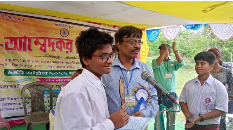 The first Ambedkar Talent Search Examination was held in the year 2021, the year when the world was resuming to run at full throttle after long period of lockdown due to Covid Pandemic. More than six hundred fifty students of fifth to ninth class participated in the examination held on December 26, 2021 under the initiative of Ambedkar Janajagarani Samiti and Tapashili Teachers Forum. The Exam consisting of total 100 marks MCQ type Questions covered the conventional class-based syllabus with Dr. Ambedkar's life. A total of 100 marks MCQ exam is conducted covering the life and work of Ambedkar. The result of Ambedkar Talent Search Examination (2021) was declared on 26th January, 2022. The first runner-up Soumjit Sardar was nominated for the “Babasaheb Ambedkar Award”, the second runner-up Lucky Mondal for the “Savitribai Phule Award” and the third runner-up Papadi Naiya for the “Eklavya Award” based on the highest marks among the candidates of all categories in this examination. Apart from this, the first, second